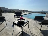 Die Steinvilla verfügt über einen privaten Pool, einen Pavillonbereich, einen Abstellraum und einen überdachten Parkplatz für zwei Fahrzeuge. Der Garten verfügt über gepflasterte Steinwege und der Eingangsbereich besticht durch feine Steinmetzarbeiten. Die Villa hat eine Natursteinfassade, Holzpergola-Details und große Glasöffnungen.
