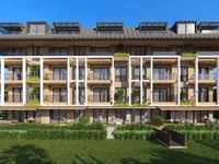 Elegance und Ökologischkeit: Der Komplex nimmt eine Fläche von 8000 m2 ein, von der 40% für Grünflächen und Landschaftsgestaltung reserviert sind.