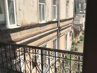 Die Küche ist geräumig und mit Einbaumöbeln ausgestattet. Wohnzimmer mit großem Balkon mit Blick auf den wunderschönen grünen Innenhof von Odessa. Eigene Gasheizung.
