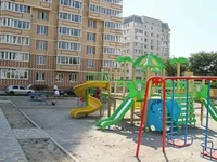 Eingezäunter Bereich. Spielplatz. Portier. Generator im Haus.