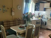 Getrennte leichte Schlafzimmer und ein Küchenstudio. Es wurden Reparaturen mit hoher Qualität durchgeführt. Die Wohnung hat eine Gassäule. Ausgestattet eine Sauna. Es gibt deine eigene Garage. Ein Vorgarten mit einer abgedeckten Laube und einem Grill, Obstbäumen und einem Weinberg.