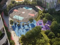 Das Highlight des Komplexes ist ein großer Parkbereich mit einer Fläche von 55.000 Quadratmetern, der einen Familienbereich mit Spielplätzen und Bildungsbereichen für Kinder und Erholungsbereiche für Eltern, einen Erholungsbereich mit Grill und eine interaktive IQ-Zone umfasst .