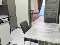 Wohnung in einem neuen Miethaus - LCD "Goldene Säulen". Hell, gemütlich mit schöner Reparatur in hellen Farben, ausgestattet mit Möbeln, Geräten (Kühlschrank, Induktionsherd, Backofen, Kapuze, Waschmaschine, Kessel, Handtuchtrockner, Klimaanlage (Winter-Sommer)). Warme Etage in der gesamten Wohnung, jeder Bereich ist separat enthalten. Für Licht gibt es einen zweitarifigen Meter. Das Haus ist an der Fassade isoliert, übergeben und bewohnt befindet sich in einem geschlossenen geschützten Bereich mit Kinder- und Sportplatz. Handel.