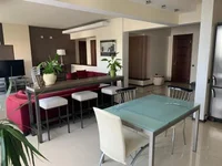 Haus der Elite-Klasse in einer ausgezeichneten Gegend, Zeremonien mit Marmortreppe, Parkplatz, eine schöne Aussicht von den Fenstern. Wohnung mit ausgezeichneter moderner Renovierung, Wohnküche 47 qm und drei große Schlafzimmer, Möbel, Geräte, Parkplatz