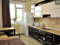1 Schlafzimmer Wohnung im Herzen von Arcadia. LCD 6 Pearl: geschlossener und geschützter Bereich, Rund-um-die-Uhr-Video-Überwachung, Feueralarm, Hochgeschwindigkeitsaufzüge, Tiefgarage. Die Wohnung wurde teure Reparaturen (Reparatur weniger als ein Jahr), voll ausgestattet mit Geräten und Möbeln. Panoramaverglasung, Meerblick. Entwickelte Infrastruktur, es gibt alles.