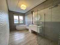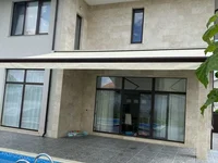 3 Etagen. Aus rotem Backstein gebaut. Das Dach besteht aus natürlichen Keramikfliesen. Die Außenverkleidung eines Teils des Hauses, der Garage und des Vorderzauns besteht aus Travertin. Der Keller ist aus Stahlbeton und isoliert: Kinoraum, Fitnessraum, Heizraum, Sauna mit Ruheraum, Badezimmer, Duschraum mit Hydromassage.