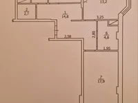 Bequemer Boden. Gesamtfläche 83 qm. Zustand der Wohnung vom Bauträger. Rohre und elektrische Leitungen sind teilweise installiert. Vergrößerte Räume durch Loggien. Die Verkabelung für Klimaanlagen wurde vorgenommen. Zwei Badezimmer. Metall-Kunststoff-Fenster. Neue Sicherheitseingangstür.