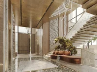 Vier weitläufige Ebenen, die mit einem Aufzug verbunden sind und über skulpturale Treppen verfügen