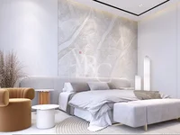 Die Dekoration verwendet dekorative Marmoroberflächen, Holzplatten, textile Elemente und Designermöbel.
