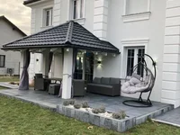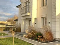 Der vordere und garten Teil des Hauses ist mit schönen Fenstern mit Trennwänden und Stuck verziert. Das Ganze ist mit einem vierköpfigen, sanften Dach gekrönt und auf der Seite befindet sich eine Garage.