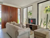 Modernes Design, Innenwohnzimmer und privater Pool in der modischen Gegend von Bali!