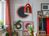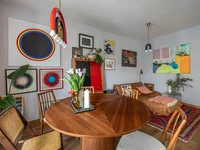 Der Wohnbereich verfügt über geölte Eichenböden, während Fliesen das Bad und die Küche schmücken. Viele Einbauschränke, die im Jahr 2020 gefertigt wurden, bieten reichlich Stauraum. Das Badezimmer wurde im selben Jahr renoviert. Die Wände sind mit einzigartigen Gemälden geschmückt, von denen einige zum Verkauf erhältlich sein können.