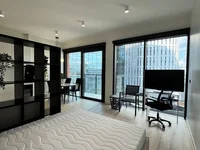 Ein modernes Studio wird in einem der neuen Wolkenkratzer, Towarowa Towers angeboten.