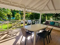 The villa features a warm Caribbean design with natural light, comfortable living spaces, and garden views that enhance the tropical atmosphere.