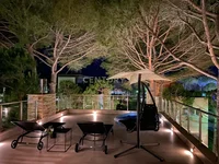 La villa tiene una superficie de 280 m2, distribuida en dos plantas. La primera planta cuenta con un amplio salón combinado con una cocina moderna, y un aseo de invitados. La segunda planta incluye tres acogedores dormitorios y dos baños. La tercera planta es una terraza equipada, ideal para la relajación y el entretenimiento al aire libre.