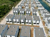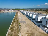 The Turquoise Marina complex is located in the Lalëzit Bay area, which is one of the largest projects, not only in Albania, but also in the Balkan region. It has an area of 350,000 m² where 35,000 m² will be water space, 5,000 m² will be dedicated to sports grounds and 3,000 m² to bicycle lanes, the rest consists of 307 villas and 216 apartments.
