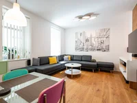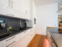 Hay un concepto espacial que no deja nada que desear: 4 habitaciones, muebles de suelo a techo, techos altos (más de 3 metros), personalizado de alta calidad hecho por el carpintero, un suelo de parquet noble, tecnología de última generación y un ambiente de vida elegante con un toque deportivo.