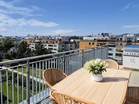 Desde las ventanas y desde la terraza se puede disfrutar de una magnífica vista de la Donaucity así como de los Leopolds- y Kahlenberg.