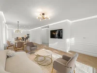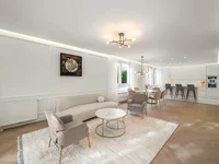 Una sensación de amplitud y elegancia se abre al entrar. El generoso diseño de la habitación, pensado para el más mínimo detalle, transmite la impresión de una casa independiente dentro de una casa. En el corazón de esta excepcional propiedad se encuentra la zona de estar iluminada con acceso directo al paisaje jardín de unos 300 m2 – un lugar de descanso y retiro, incrustado en rica vegetación.