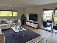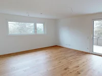 La zona de estar abierta es el corazón de la propiedad. Aquí podrá disfrutar no sólo de la vista del verde, sino también relajarse en su propio balcón y disfrutar del aire fresco. La combinación de suelos de parquet y calefacción por suelos garantiza un ambiente agradable y un clima de bienestar en todas las estaciones.