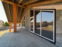 Hay ventanas de PVC, así como tres ventanas de ático chic, calefacción en forma de suelos cálidos, un techo de techo de metal, paredes de bloques de hormigón ceramsy, una base de bloques en un cojín monolítico.