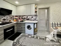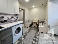 Apartamento de 1 dormitorio, Ag. Cherni, Molodogvardeyskaya str., 1986 p., 1/2 ladrillo, 39.0 / 38.3 / 17.9 / 8.1, baño combinado, balcón, sótano, ventanas de doble acristalamiento, puertas interiores - chapa, techos de estiramiento, suelos - laminado (plazado en el escredo), paredes se pegan con papel pintado, azulejos modernos en el baño. El apartamento está bien renovado. Mira más de cerca.