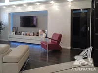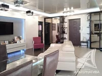 Apartamento de 2 habitaciones, Brest, Rokossovsky St., 2012, 8 / 9 ladrillo, 59.5 / 46.9 / 32.0 / 14.9, baño combinado, dos loggias acristaladas, doble acristalamiento, puerta delantera de metal (armadura), techos - estirado y paredes secas (2.51 m), suelos - laminado y azulejos, hay calefacción de suelo (en la cocina, en la loggia), paredes - color decorativo y plastered, teléfono. Conjunto de cocina, superficie de cocina eléctrica, horno, capucha, armarios-coupe (en la sala de estar, dormitorio, loggia), el resto de los muebles por acuerdo. Apartamento con soluciones individuales de diseño. Las ventanas dan al parque. Un pasajero. Un vestíbulo para dos apartamentos. Mira más de cerca.