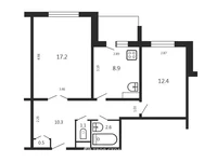 Disposición racional del apartamento: cocina con acceso al balcón, baño separado, habitaciones separadas.