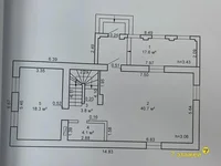 1 piso: 3 salones (18.3; 17.6 y 40.7 metros cuadrados), pasillo, s/u; ático: 2 salones (22,4 y 42,6 metros cuadrados), segunda granja; Tsokol - 20,9 metros cuadrados + escaleras.
