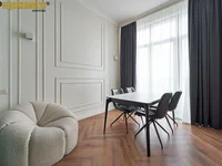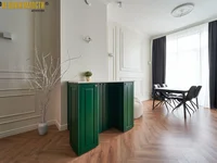 Apartamento con reparación de diseño y reflexión al diseño más pequeño. Se compone de una amplia sala de cocina y un dormitorio separado. 2 baños.