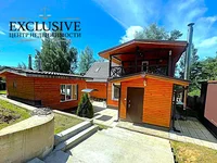 Una de las casas (log, 2020 construido, 100% listo), dos plantas, superficie total de 101 metros cuadrados - tiene un amplio salón, cocina y salas de estar, baños, espacio de almacenamiento. Dentro hay todo el equipamiento moderno necesario para una vida cómoda fuera de la ciudad: Jacuzzi, chimenea, una habitación separada para una sauna. La casa tiene una caldera de combustible sólido y todo el equipo necesario, que le permite vivir en ella todo el año. Desde las ventanas y terrazas abiertas de la casa, se abre una vista panorámica pintoresca del bosque conífero. Todos los muebles y equipos disponibles permanecerán a la venta para los nuevos propietarios.