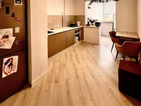 4. piso: aislante de ruido, atornillado en un nivel, sobre el laminado de una alta clase de fuerza sin umbrales, en el baño - baldosas importadas de alta calidad.