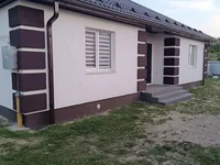 Las paredes son bloques de silicato de gas, aislados, plasterizados y pintados. Ventanas de PVC, ventanas de doble cámara. El techo es azulejo de metal.