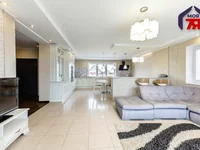 Cocina con fachadas modulares de MDF pintadas y encimera de cuarzo combina perfectamente estética y funcionalidad. La plomería y el suelo caros de los azulejos italianos y la tabla de parquet hacen la casa aún más cómoda y duradera.