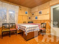 Dentro de la casa está decorado con madera, un conjunto funcional está instalado en la cocina.