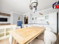 La cocina está hecha para pedir desde una noble variedad de roble y complementada con electrodomésticos incorporados, que enfatiza el alto nivel y estado del apartamento. Todo el equipo es casi nuevo, en perfecto estado. En el comedor hay una mesa grande, que se convertirá en el centro de cenas familiares y reuniones acogedoras con amigos.