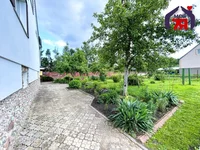 En el sitio ya se ha plantado un jardín con plantas de fruta y decorativas, que crea un ambiente de coziness y armonía. El césped es agradable al ojo, y un jardín bien cuidado es una oportunidad para cosechar directamente en casa.