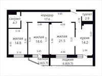 Material de pared: ladrillo. Año de construcción: 2008. Piso: 7/11, 2 loggia Zona en la NSS 103.7 metros cuadrados. Superficie total: 94,3 metros cuadrados Superficie de vida: 54.9 metros cuadrados. Cocina: 14.2 metros cuadrados. Altura de techo: 2.72 m