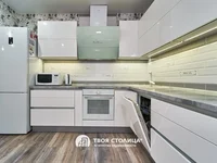En el piso de la habitación, sala de cocina y pasillo - laminado de alta clase de resistencia al desgaste. Set de cocina está hecho de materiales premium con accesorios Blum, electrodomésticos instalados de fabricantes europeos líderes (Bosch, Gorenje).