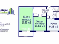Metropolitan apartment: total. 52.2 m2, lived. 29.4 m2, cocina 9.3 m2