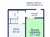 Apartamento cuadrado: SNB 42.3 m2, total. 40,2 m2, vivía. 17,7 m2, cocina 9 m2