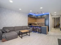 El apartamento es elegantemente renovado utilizando materiales de construcción de alta calidad: baldosas de piso (calentado) / laminado, paredes pegadas, techos pintados, ventanas de alta calidad doble acristalamiento, loggia aislado, puerta frontal de metal sólido. Cocina integrada con electrodomésticos, chimenea eléctrica, 3 amplios armarios -