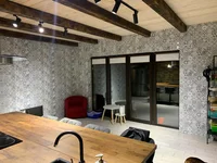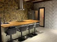 La casa es muy interesante e inusual reparación. Piedra natural y madera se utilizan. Equipado con electrodomésticos modernos, 4 nudos sanitarios, escaleras forjadas.