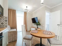 El apartamento está hecho en un estilo moderno utilizando materiales de alta calidad.