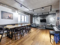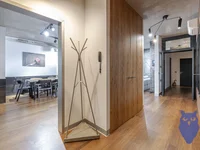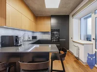 El interior está hecho en un estilo moderno con elementos loft: madera natural, materiales de textura, iluminación de escenarios. En la decoración utiliza materiales de alta calidad y duraderos, el apartamento se ve relevante y caro.