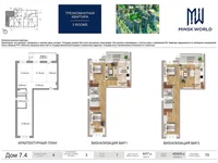 Ya desarrollado, y en el futuro se desarrollará tanto como sea posible, infraestructura: un gran estacionamiento cerca de la casa, un parque infantil ajardinado, un jardín de infantes con piscina. En el barrio, los primeros pisos se dan a bienes raíces comerciales. Tiendas, bancos, centros comerciales, ¡hay todo! Y cuántos más serán, incluyendo el Minsk World Center y el centro comercial más grande "Avia Mall" a pocos minutos a pie de casa.
