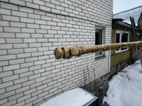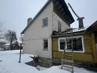 En la calle Dzerzhinsky en una gran parcela de 10.26 acres entre numerosos arbustos thuya y decorativos, se localizó una casa de pueblo con ventanas de PVC y una extensión de ladrillos tipo GSB y mansard. La vivienda necesita reparación.