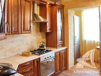 Apartamento de 3 piezas, Brest, st. Menzhinsky, 2003 2/ 9 ladrillo, 83.1 / 80.6 / 49.0 / 9.3, baño separado, sótano, dos troncos acristalados, techos de tensión (glossy), ventanas de madera de doble cámara, suelos - tabla para barniz y azulejos (cocina) (puesto en la corbata), azulejos modernos en el baño, tuberías decorativas Auriculares de cocina, perchero, superficie de cocina, horno, capucha, auriculares para dormir, armario, hall de entrada. Apartamento con soluciones individuales de diseño. El apartamento está situado en dos lados. Un ascensor de carga y pasajeros. Tambour para cuatro apartamentos, silla de ruedas. Zona de juegos en el patio, estacionamiento para coches. , , , . Vilchinskaya Yana Boleslavovna. ALTERNATIVE Brest