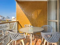 Located on a high floor, the flat opens onto a large bright living room with dining area. At the end, a balcony offers stunning views of the street, the community and the Pão de Açúcar.