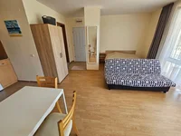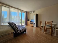 This spacious 50 m² studio apartment is for sale in the Imperial Fort Club complex in Sveti Vlas. The apartment is located on the ground floor and is in excellent condition. It is fully furnished and equipped, featuring a fully equipped kitchen, appliances, and a cozy sitting area. The bathroom has been completely renovated and is in excellent condition. From the living room, there is access to a balcony with views of the complex's park landscape. The apartment is move-in ready and can be occupied or rented out without any additional investments.